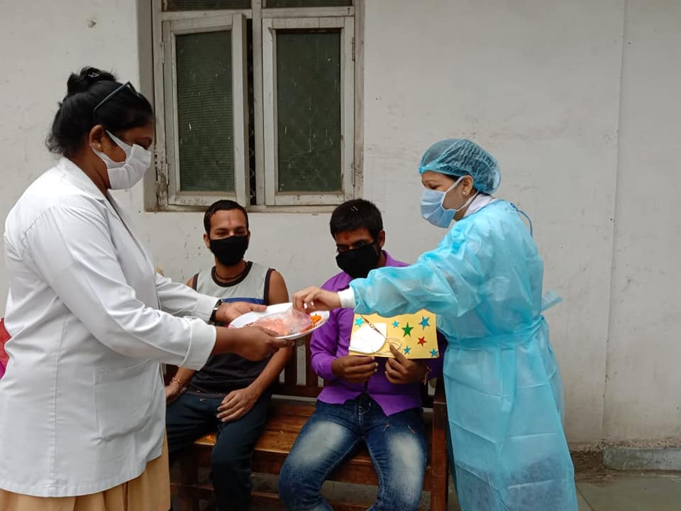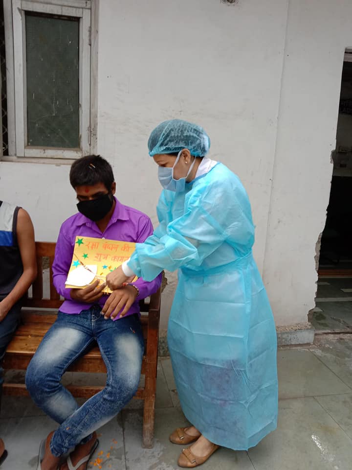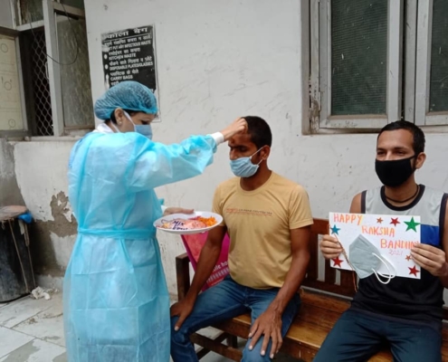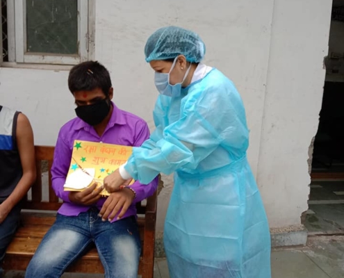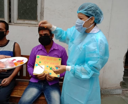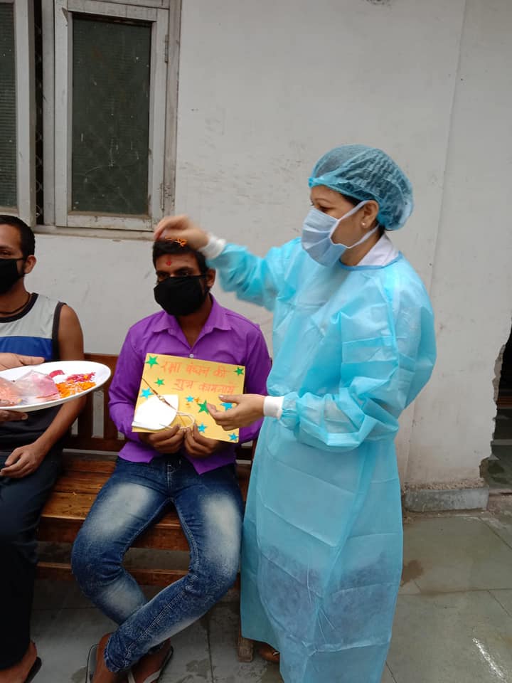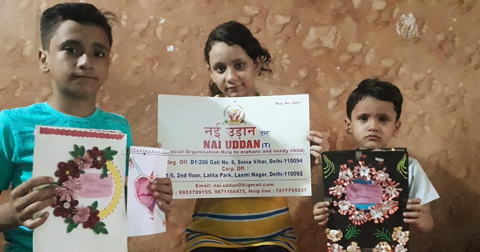 भाई बहन के पवित्र पर्व के पूर्व संध्या पर नई उड़ान की ओर से कार्यक्रम का आयोजन किया गया नई उड़ान ट्रस्ट के बच्चों ने कोविड-19 से लड़ने वाले राजधानी के विभिन्न अस्पतालों के डॉक्टरों,नर्सओ,पैरामेडिकल स्टाफ, सफाई एवम पुलिस कर्मियोंको राखी, ग्रीटिंग कार्ड, भेजकर मनाया
